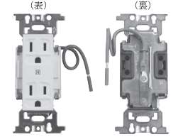 - コンセントの表面にhospital. ホスピタルを意味する[H]が表示されていて、接地線がコンセントに直接接続されている。